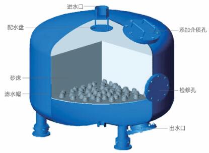 过滤系统由标准单元砂缸组成,过滤流量可从30.6立方米/小时增至2500立方米/小时。