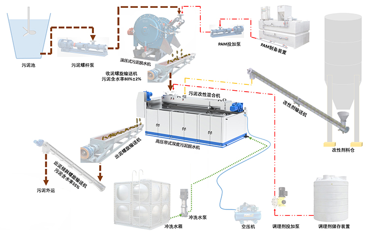 污泥改性调理+高压带式深度脱水工艺特点